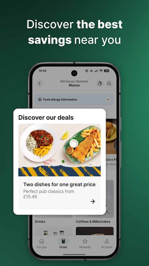 Заходите ли вы выпить пинту пива, насладиться едой, выиграть фантастические призы или проверить свои навыки в Pub Match, приложение Greene King Pub and Restaurant сделает каждый визит более приятным, быстрым и увлекательным. От заказа по меню до поиска ближайшего паба, безопасной оплаты и получения наград — это приложение станет вашим идеальным спутником в каждом посещении Greene King.