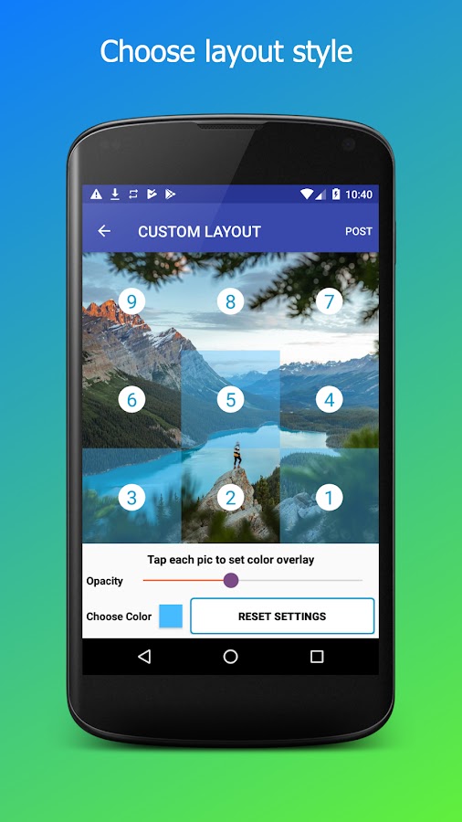 Загрузите существующее изображение из своей библиотеки, выберите подходящий вариант размера и позвольте Grid Maker для IG обрезать изображение для вас! Все, что вам нужно сделать, это отправить полученные фотографии в свой Instagram в порядке, предложенном приложением.