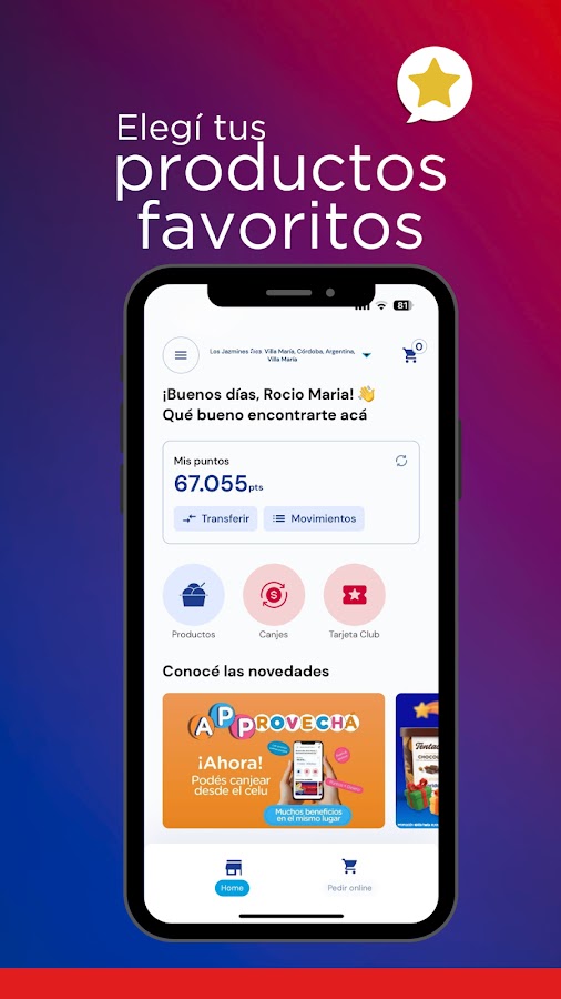 В Аргентине и Парагвае, если вы присоединились к Клубу, вы можете увидеть свои накопленные баллы, узнать, сколько баллов вам нужно, чтобы выкупить продукт, и иметь свою виртуальную карту для выкупа без необходимости брать пластик в магазин.