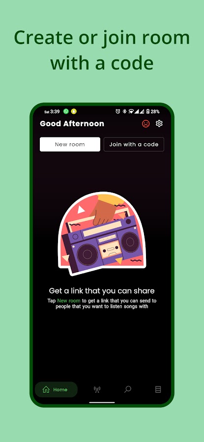 С Groic вы можете слушать музыку и радио вместе с друзьями в любое время и в любом месте! Слушайте любимую музыку и общайтесь с друзьями в режиме реального времени.