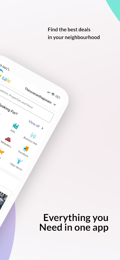 Недвижимость: Здесь пользователь может искать землю, здания, дома, квартиры, виллы, магазины, офисы, PG и гостевые дома, которые можно сдать в аренду, арендовать, продать и купить как новую, так и бывшую в употреблении недвижимость в таких городах, как Ченнаи, Калькутта, Кочи, Виджаявада, Хайдарабад, Бангалор, Нью-Дели, Чандигарх, Джайпур, Мумбаи, Нойда, Канпур и другие места в Индии. Найдите и выберите желаемый дом и землю в соответствии с выбранным вами местоположением и многим другим. Покупайте у проверенных продавцов, таких как владельцы, брокеры, агенты.