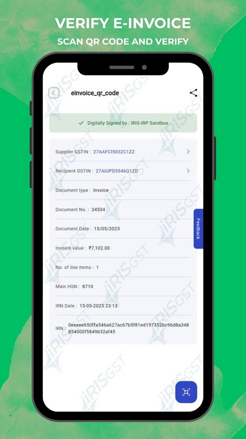 ✔ Разработано IRIS, сертифицированным поставщиком услуг GST Suvidha (GSP) и порталом регистрации счетов (IRP), и поэтому беспрепятственно интегрировано с порталом GST и GSTN