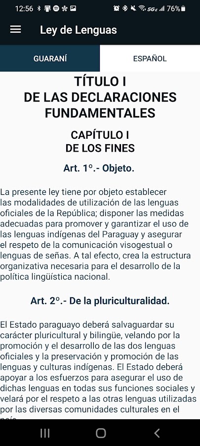 Секретарь языковой политики, Академия языка гуарани, Институт современных языков Национального университета Асунсьона, PopulisTech и группа звукозаписи в Гуарани сформировали многопрофильную рабочую группу для создания приложения для Android «Гуарани Айву». У гуарани Айву есть трехъязычный переводчик (гуарани / испанский / английский), и он стремится стать справочным пособием для местной аудитории Парагвая, а также для заинтересованных лиц за рубежом, чтобы способствовать пониманию гуарани и изучению языка. Основное внимание в этом приложении уделяется развитию двуязычия между двумя официальными языками Парагвая (гуарани и испанский), а также английским.