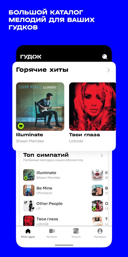 t2 «Гудок» – рингтоны, хиты, саундтреки и музыка для вашего телефона вместо стандартных гудков и звонков.