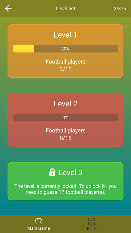 ⚽ Помимо основных уровней в приложении имеются тематические пакеты с вопросами.