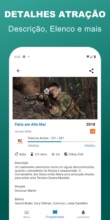 Подробно просмотрите аттракцион с такой информацией, как возрастной рейтинг, отзывы, основной актерский состав и режиссер, изображение (если оно предоставлено каналом), будущие показы и другое.