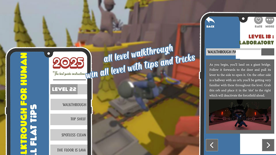 Это приложение содержит полное прохождение игры Human Fall Flat, которое поможет вам легко пройти все уровни игры.