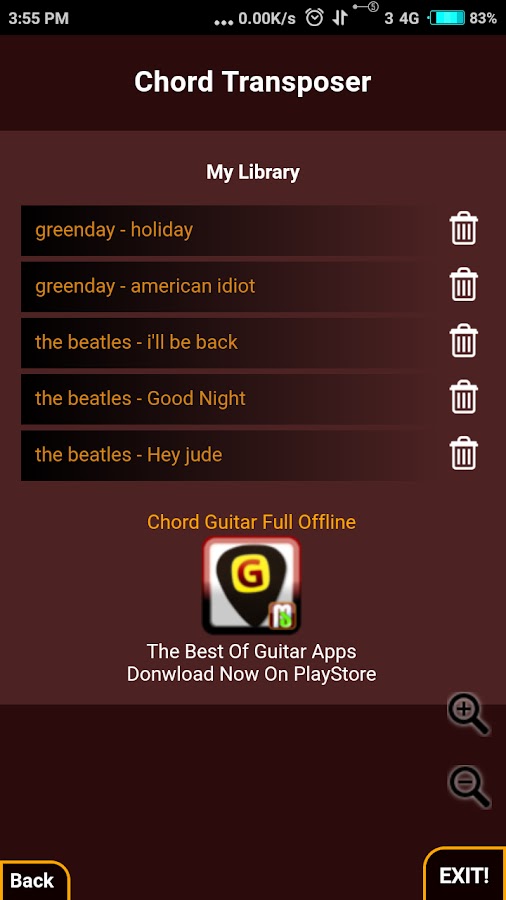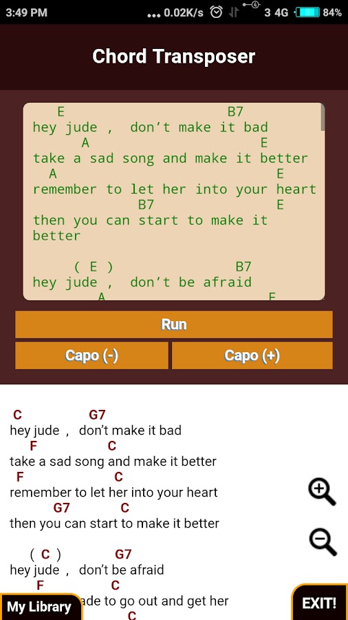 Guitar Chord Transposer Простой и менеджер это бесплатный и простой способ транспонировать аккорды гитары. Просто введите ваши аккорды и лирические песни и транспонировать аккорды! это как волшебство !!! Транспонирование гитары и аккорды мгновенно — Теперь вы можете транспонировать аккорды гитары табулатуры, ключи изменения гитарных табулатур и транспонировать аккорды, где каждый в любом месте и играть позже ВНЕ!