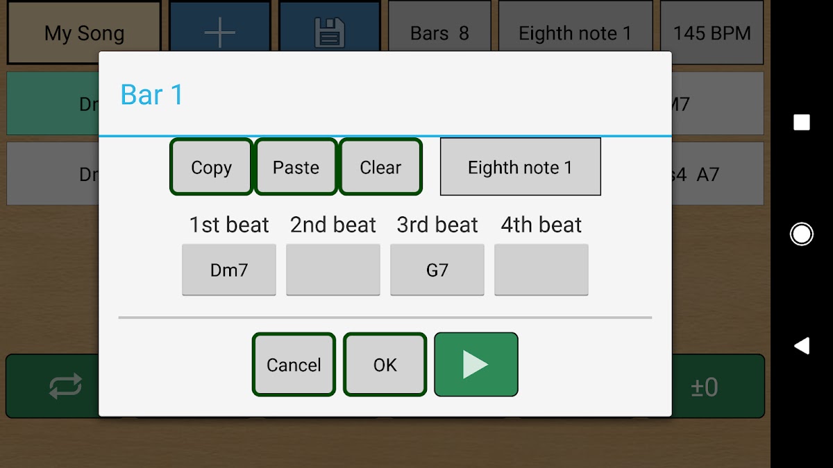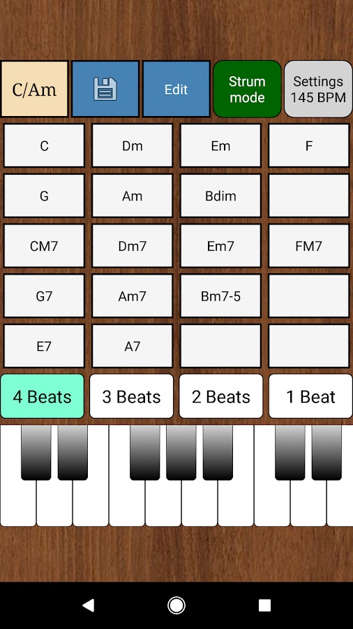 Нажав на кнопку, вы можете сыграть аккорд или арпеджио длиной в один такт.