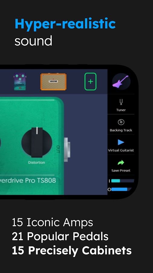 Подключите гитару к мобильному устройству и используйте гитарные педали эффектов, настоящие ламповые усилители и кабинеты со своего телефона или планшета.