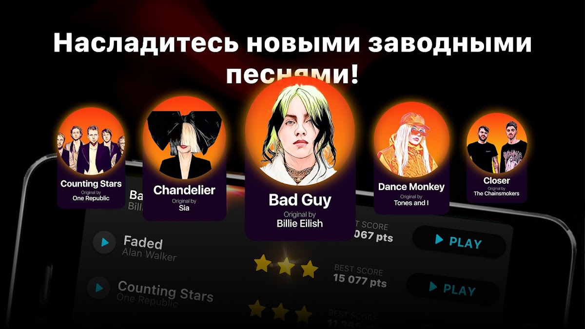 Наше приложение предлагает тысячи песен с уроками, и мы дополняем список каждую неделю!