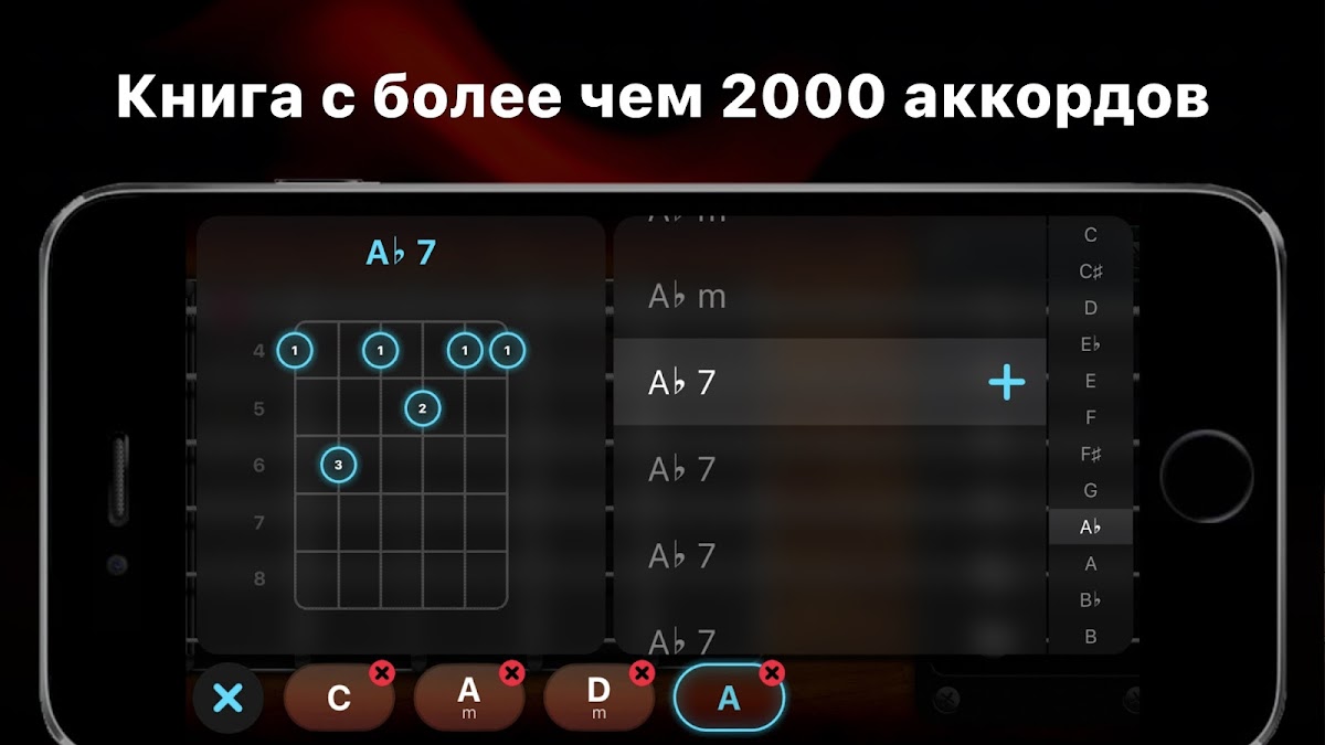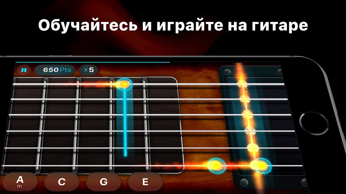 Научиться играть на гитаре еще никогда не было так просто! Выучите тысячи песен и аккордов и создавайте чудесную музыку прямо на вашем устройстве. Играйте, словно на настоящей гитаре: аккорды всех уровней сложности, арпеджио, бенд, игра с медиатором…наслаждайтесь полным фидбеком и сверхреалистичным звуком! Хотиет поучаствовать в джем-сессии? Попробуйте режим свободной игры и создавайте ваши оригинальные треки. Более 2000 аккордов чтобы свести вас с ума!