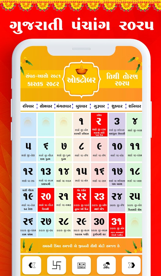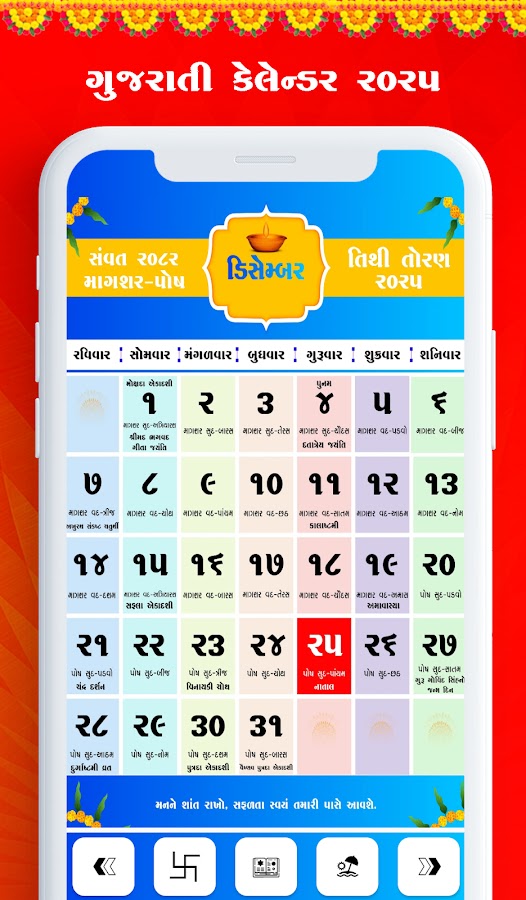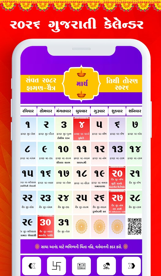 Приложения-календари на гуджаратском языке очень полезны для получения информации о фестивалях, праздниках, Шубх Мухурате и гуджаратском панчанге на 2026 год.