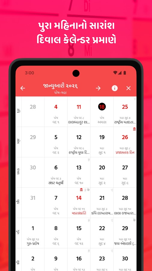 Календарь Mitra — один из лучших гуджаратских календарей на 2026 год в своем роде. Вы можете посмотреть титхи (дата начала и окончания праздника), праздники, джанмараши (дата рождения) и выходные дни всего одним щелчком мыши.