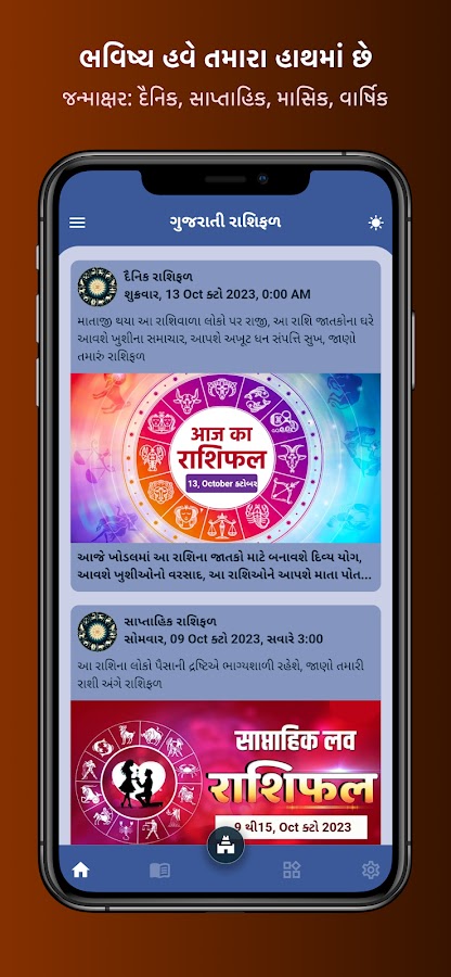 Это приложение Гуджарати Рашифал: રાશિ ભવિષ્ય основано на принципах ведической астрологии. Наш «Гуджаратский Рашифал: રાશિ ભવિષ્ય» расскажет вам, каким будет каждый день для вас с разных точек зрения, таких как любовь, семья, финансы, успех и процветание и т. д. Гуджарати также доступен здесь для всех знаков зодиака. Сегодняшний гуджаратский гороскоп, представленный здесь, подготовлен нашими проницательными астрологами, чтобы каждый день давать вам лучшие астрологические предложения.