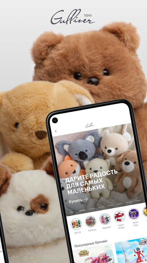 Приветствуем в Gulliver Family — официальном интернет-магазине брендов Gulliver, Button Blue, GLVR и Gulliver Toys. В приложении вы найдёте: