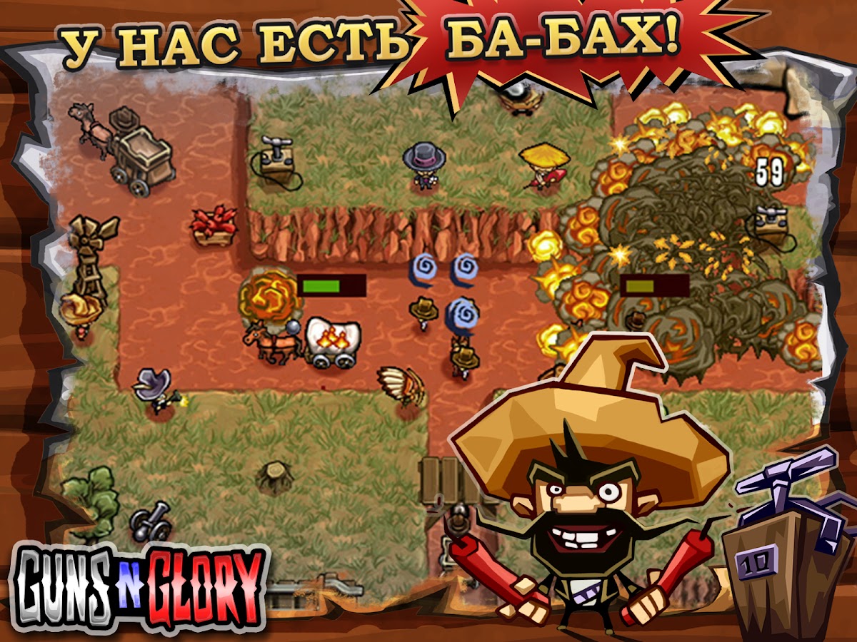 Кому нужны герои, когда можно играть за плохих парней? Займите выгодную стратегическую позицию и затаитесь в каньоне, чтобы напасть на переселенцев, дилижансы и золотой поезд. Не оставляйте свидетелей! Попробуйте эту инновационную игру, если вам надоели стандартные башенки (tower defense) или вы просто ищете отличный мобильный экшен! Получите Guns’n’Glory прямо сейчас — это БЕСПЛАТНО!