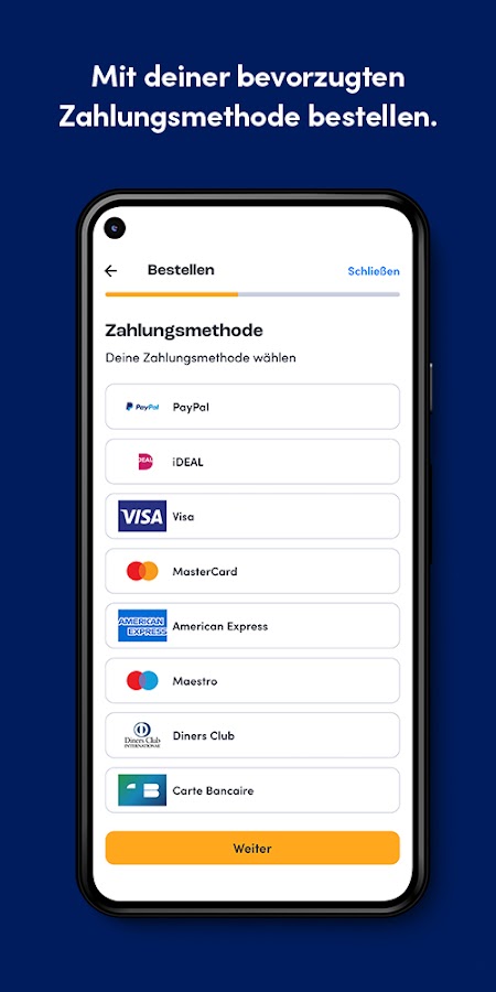 Вы можете выбрать один из нескольких безопасных способов оплаты, таких как Б. Apple Pay, PayPal, Maestro, Visa, American Express, Sofort и EPS.