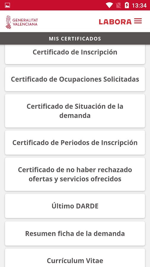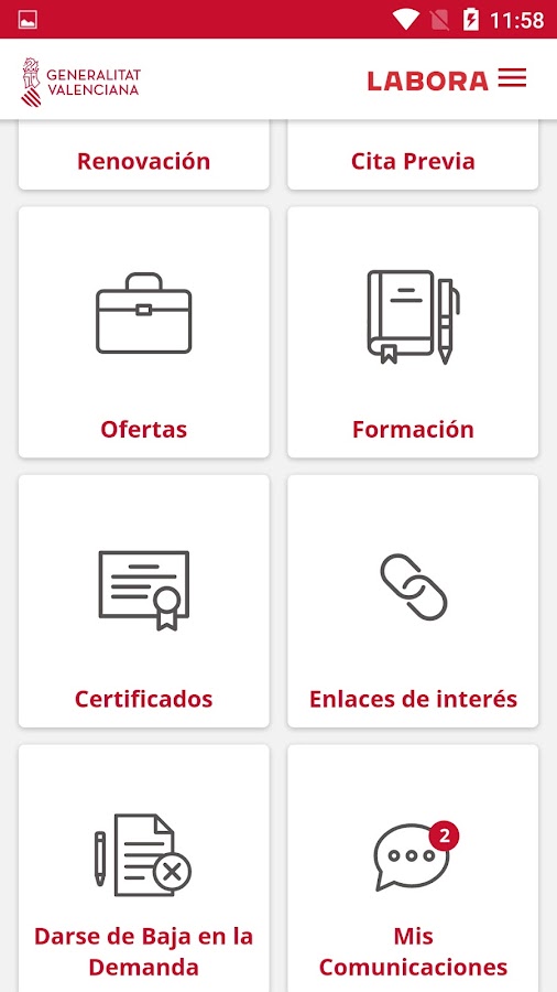 Кроме того, если вы уже зарегистрированы в LABORA, вы можете получить доступ и идентифицировать себя из приложения, чтобы иметь все услуги и процедуры, доступные в зависимости от статуса вашего заявления о приеме на работу.