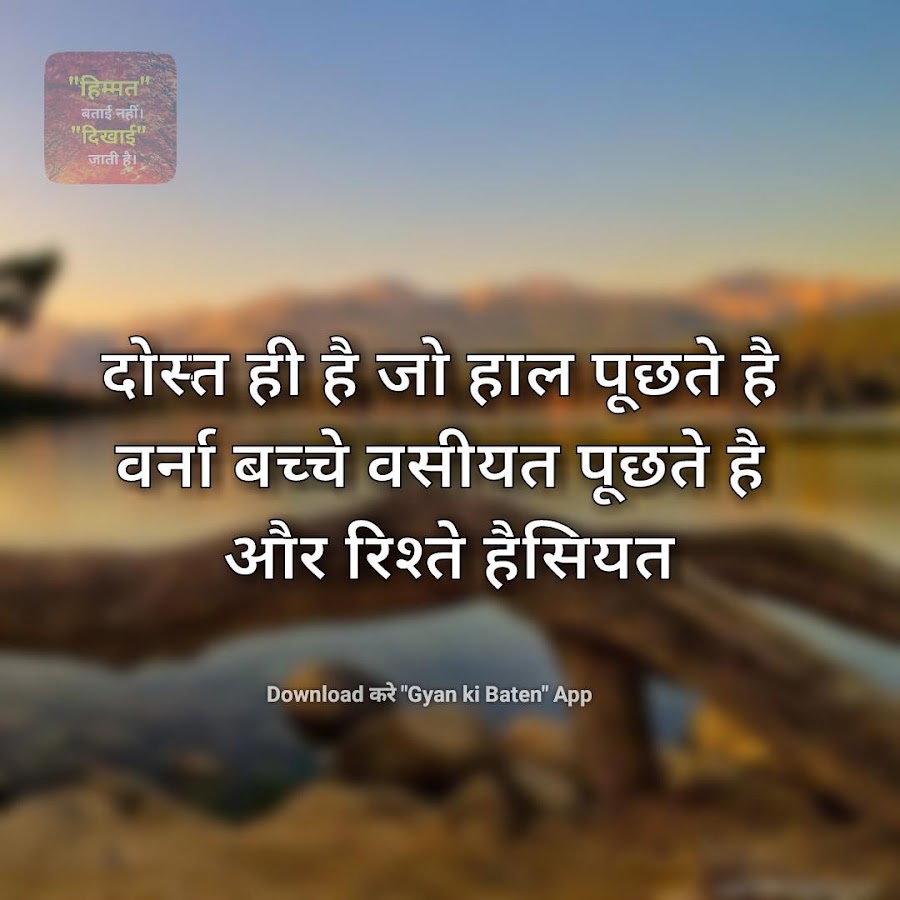 Существует большая коллекция Gyan ki Baatein. В этой коллекции вы найдете истинные мысли на хинди или позитивные мысли с хинди Suvichar Shayari, вместе думайте о позитивных образах и WhatsApp, доброе утро, suvichar на хинди.