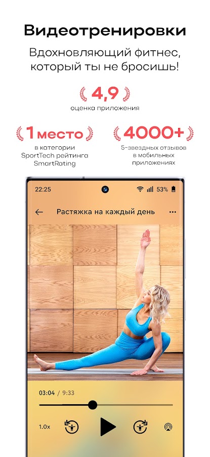 — Пробуйте десятки вариантов бесплатных тренировок и занятий йогой сразу после установки