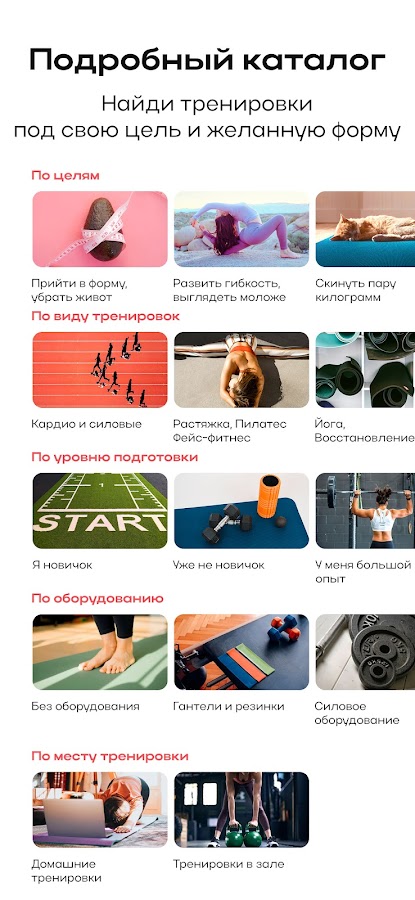 — Тренировки от 10 минут до полноценных программ на 2–3 месяца — выбирайте свой темп