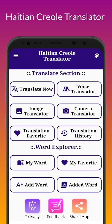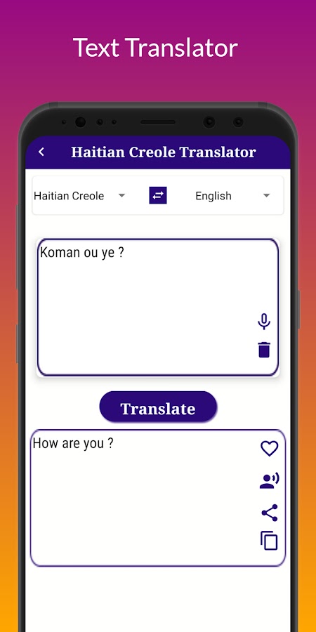 👉 Представляем Haitian Creole Translator, лучшее образовательное приложение, разработанное компанией World Languages Translator Developer и предназначенное для облегчения изучения языка и перевода. Это приложение, ориентированное на гаитянский креольский язык, служит ценным ресурсом для пользователей, желающих улучшить свои языковые навыки и преодолеть коммуникативные барьеры. Независимо от того, являетесь ли вы новичком или продвинутым учеником, в этом инновационном приложении вы найдете все необходимое, чтобы открыть мир гаитянского креольского языка.
