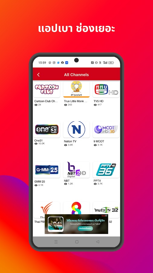 С новым приложением H TV смотреть телевизор в прямом эфире быстрее и проще, чем когда-либо! БЕСПЛАТНО для пользователей любой мобильной сети в Таиланде (AIS, DTAC, TrueMove H и т. Д.).