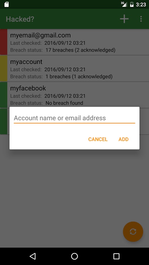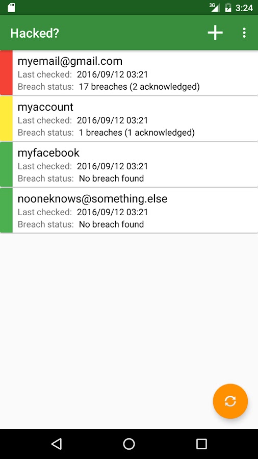 После того, как имя одного или нескольких счета (ов) или добавляются в приложение электронной почты (адреса), он будет проверять, если какой-либо из тех, которые находятся в базе данных haveibeenpwned.com. График ежедневно (или еженедельно) чека и приложение покажет уведомление, когда новый счет нарушение было обнаружено.