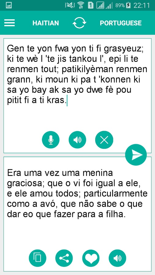 Это бесплатное приложение может переводить слова и текст с гаитянского креольского на португальский и с португальского на гаитянский креольский. Лучшее приложение для простого и быстрого перевода, которое можно использовать как словарь. Если вы студент, турист или путешественник, это поможет вам выучить гаитянский креольский или португальский язык!