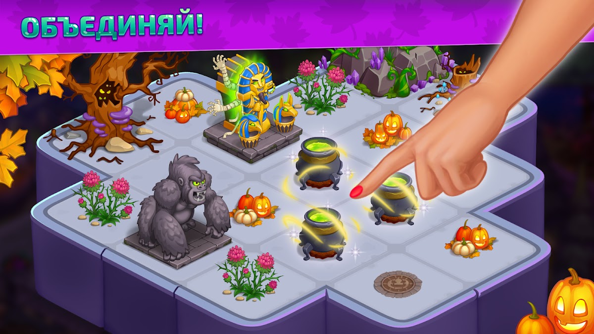 Выращивайте огромное разнообразие волшебных посевов: тыквы для Хэллоуина, магические грибы, золотые яблоки, мандрагоры! Собирайте богатый урожай каждый день!