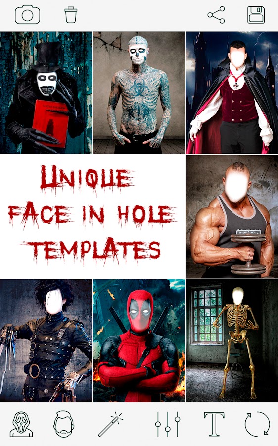 Используй оригинальные шаблоны face in hole и коллекцию умопомрачительных наклеек для создания фото шедевров
