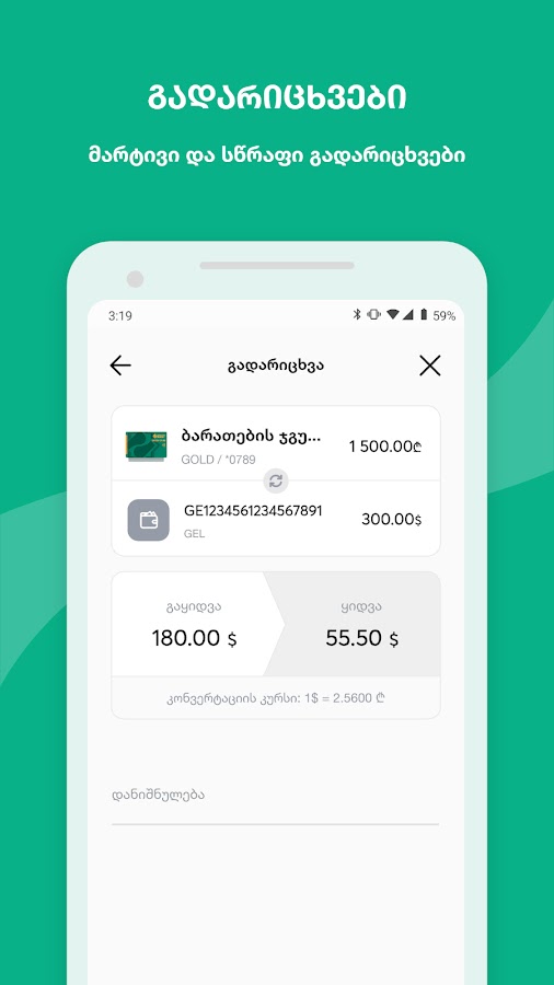 . Конвертируйте деньги в разные валюты для мобильного банкинга.
