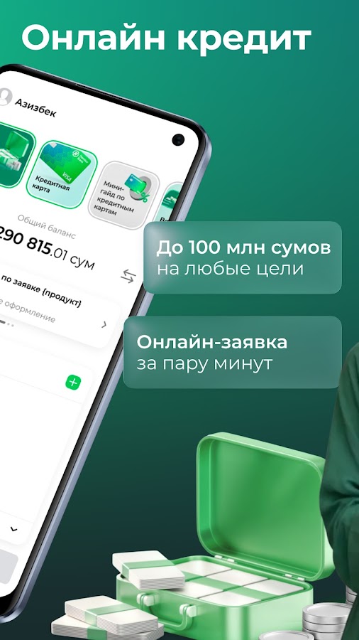 Moliyaviy yordam kerakmi? Ilova orqali kreditga onlayn ariza topshiring – hech qanday kafil yoki garov talab qilinmaydi. Hatto bank mijozlari bo‘lmaganlar ham kredit olishlari mumkin.