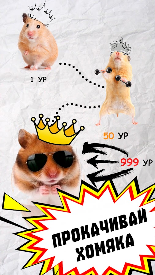 Грандиозное будущее: Совсем скоро в игре появятся захватывающие мини-игры и полная кастомизация. Создай самого стильного и богатого хомяка в мире! ( ̄y▽, ̄)╭