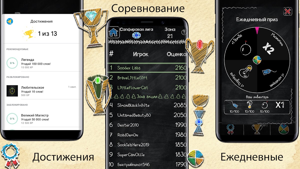 ★ Соревнуйтесь с другими в единственной игре Виселица с мировой лигой! 4 дивизиона разделены на зоны с количеством игроков не более 100 человек.