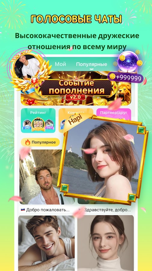 Вы можете быстро найти новых интересных друзей на различных тематических вечеринках. Это удобное и приятное сообщество, где голосовой чат облегчает общение, позволяя вам свободно взаимодействовать и общаться в чате с новыми друзьями.