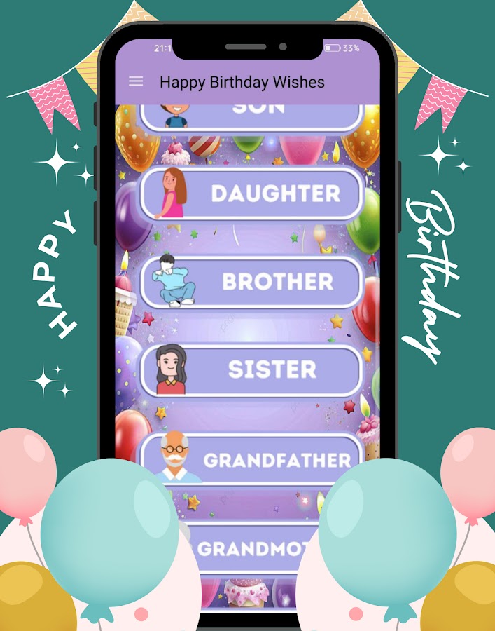 Благодаря удобному интерфейсу Happy Birthday Wishes очень легко найти идеальное поздравление на день рождения. Просто выберите отношения, просмотрите наши тщательно составленные сообщения и отправьте их одним касанием! Это так просто!