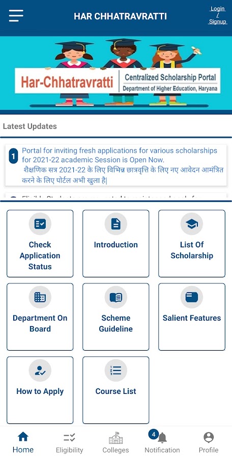 «हर-छात्रवृत्ति» पोर्टल सबसे प्रमुख छात्रवृत् ति पोर्टल में से एक के रूप में उभरा है जो आवेदन क े तीन स्तरीय सत्यापन की पेशकश करता है। छात्र आवेदन पत्र को तीन स्तरों अर्थात संस्थान , . से सत्यापित किया गया और इस प्रकार आवेदक का पूर् ण प्रमाणीकरण सुनिश्चित किया गया। यह पोर्टल राज्य के प्रमुख कार्यक्रम यानी हरिय ाणा सरकार की परिवार पहचान पत्र (पीपीपी) योजना के साथ भी एकीकृत है। राज्य सरकार की छात्रवृत्ति योजनाओं का लाभ उठा ने के लिए प्रत्येक आवेदक के पास परिवार पहचान पत ्र (पीपीपी) होना अनिवार्य है। हर-छात्रवृत्ति पोर्टल में हरियाणा निवासी वाल े छात्र जो हरियाणा से बाहर पढ़ते है,भी शामिल हों गे। Закрыть न किया जाएगा।