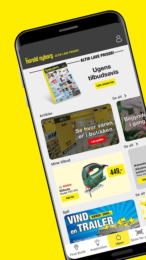 Вы можете легко узнать цену товара в магазине — отсканируйте товар телефоном и получите цену и информацию о товаре. Если вам нужно быстро найти товар, вы можете посмотреть местоположение товара в магазине в приложении. Вы можете получить выгодные предложения и интересные мероприятия от местного Харальда Нюборга — выберите свой любимый магазин. В то же время вы по-прежнему можете найти все функции, которые вам уже понравились: информационный бюллетень с предложениями этой недели, интересные тематические каталоги и массу вдохновения. Наши увлекательные игры дают вам возможность каждый день выигрывать потрясающие призы, а также вы участвуете в борьбе за наш большой главный приз, который мы тщательно отбираем в зависимости от сезона и предпочтений потребителей.