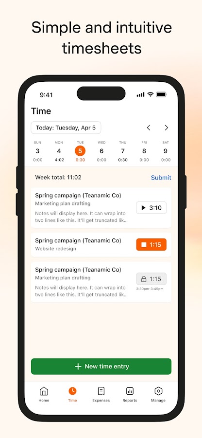 — Используйте быстрый ввод времени, чтобы добавлять общие значения времени и экономить время.