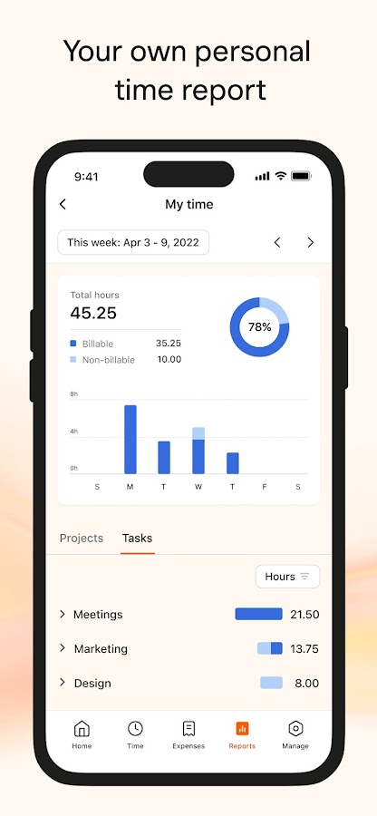 — Просматривайте, как время вашей команды распределяется по проектам и задачам, чтобы оставаться синхронизированным.