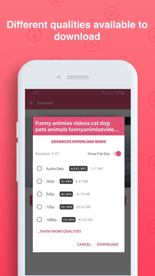 Вы можете не только загружать любые видео из Интернета и других популярных сайтов социальных сетей, но также загружать версии любых видео в ВЫСОКОМ РАЗРЕШЕНИИ (HD) в потрясающем качестве, когда они доступны. Это делает нас выдающимися и уникальными среди остальных подобных приложений.