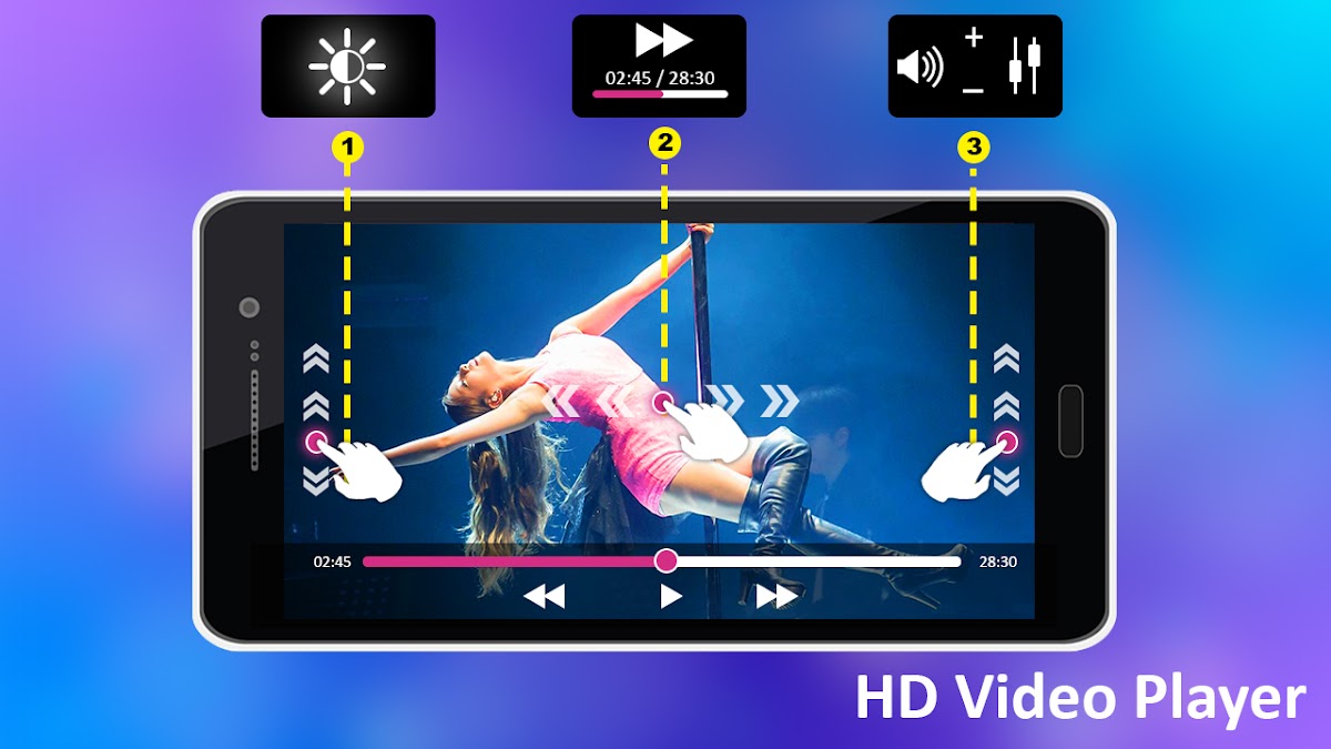 Видеопроигрыватель для Android — лучший видеоплеер на рынке. Воспроизведение видео высокого качества воспроизводится гладко. HD Video Player воспроизводит все форматы видео, поэтому мы можем назвать его wmv-плеером, avi-проигрывателем, flac-проигрывателем, flv, медиа-плеером, проигрывателем фильмов, wma-плеером, av-плеером, игровым видео, mpg, быстрым видеоплеером , Лучший видеоплеер.