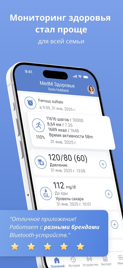 Единственный в мире комплексный дневник мониторинга здоровья, который может собирать более 25 типов измерений с более чем 900 Bluetooth-совместимых сенсоров. MedM Health — это не просто журнал жизненно важных показателей, таких как артериальное давление, уровень глюкозы, масса тела, температура, частота сердечных сокращений и насыщение кислородом — это всеобъемлющее приложение для ведения дневника здоровья, которое помогает пользователям брать на себя ответственность: достигать целей в области благополучия, управлять хроническими заболеваниями и улучшать качество жизни.