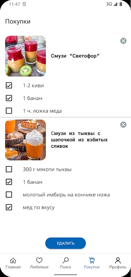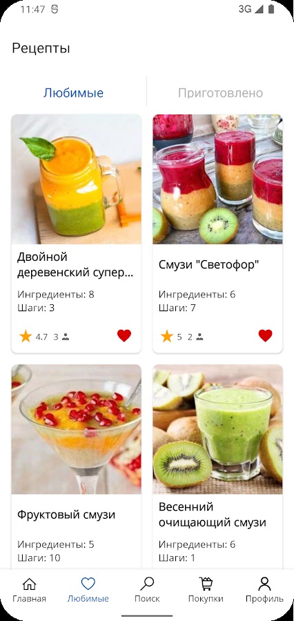Все Смузи рецепты разделены на категории для удобного использования. Также в приложении есть удобный поиск по названиям, и по ингредиентам, который упрощает для Вас выбор рецептов!