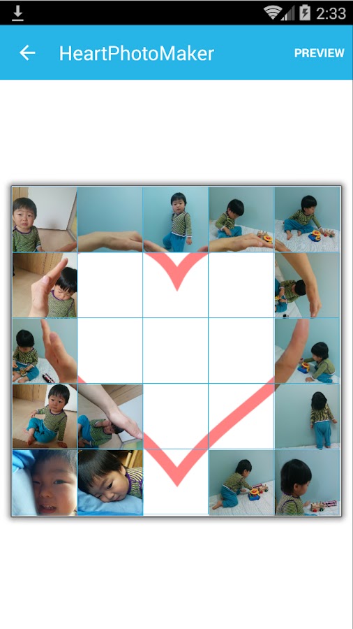 HeartPhotoMaker является создание единого форме сердца фото с девяти фото смеси вместе.