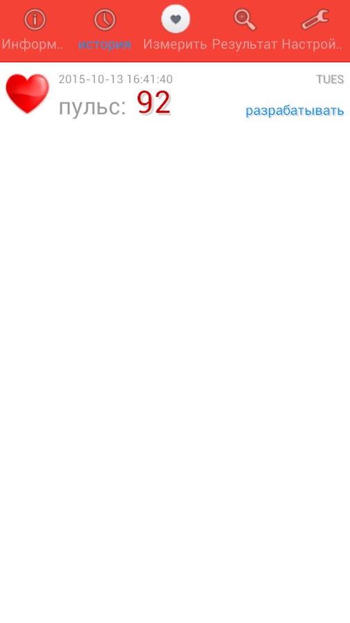 Только что разговаривал со своим другом. Раньше он измерял пульс с помощью пульсометра и записывал свои результаты, но теперь с помощью этого приложения он может в любое время измерить свой пульс и занести его в журнал приложения.