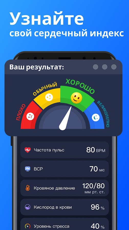 Отслеживайте мгновенный сердечный ритм с помощью научного дизайна Монитора сердечного ритма. Просто прикоснитесь кончиком пальца к камере, и наш монитор сердечного ритма с датчиком отпечатков пальцев сделает остальное. Измеряйте сердечный ритм, пульс и уровень стресса — всё в одном месте.