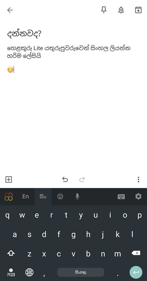 Облегченная версия Helakuru, которая предлагает только функции сингальской клавиатуры. Хелакуру — гордый шри-ланкийский продукт, которым миллионы шри-ланкийцев во всем мире пишут на своем родном сингальском языке в цифровом формате.